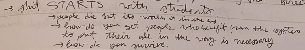 The guerilla studies. The guerilla studies. The guerilla studies. My brothers and sisters, before I sit down, I beg you, I plead with you… I have thrown out some concepts. You may not have to accept them but I only ask one thing. I beg you to study. I beg you to analyze the problems of our people. You are students. In any revolutionary movement, students played the role of the revolutionary intelligentsia. Your job is to analyze the problems that face our people, criticize the proposed solutions, argue and debate and discuss them, and then give them back to the masses. That is your job.